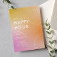 A happy hour invitation featuring a modern pink, yellow and orange gradient as background. Use this invitation to invite your employees or colleagues to your company's happy hour event.