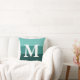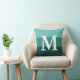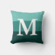 Modern Gradient Teal Stripes Big Letter Monogram Throw Pillow