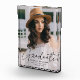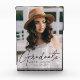 Celebrate your graduate's achievement with a custom graduation photo keepsake. The photo block features the graduate's vertical photo with "graduate" displayed in a trendy black script. Personalize the modern graduation photo block by adding the graduate's name, school, and graduation year.