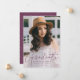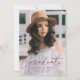 Celebrate the grad with our stylish vertical photo graduation announcement. The graduation announcement displays the graduate's vertical photo with "Graduate" in a purple modern calligraphy script overlay. Personalize the front of the modern graduation announcement by adding the graduate's name, school name, and graduation year. The announcement reverses to feature a trendy purple and white dotted geometric pattern. The design is perfect for both high school and college graduates.