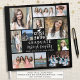 Create a graduation party guestbook with a personalized photo collage cover with 11 pictures of your graduate in various shapes and sizes, their Class Year in a modern typography design with their name and school name in your choice of font styles and color as well as the background color (shown in white on black). ASSISTANCE: For help with design modification or transferring the design to another product, contact the designer BEFORE ORDERING via the Zazzle Chat MESSAGE tab below or email makeitaboutyoustore@gmail.com.