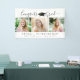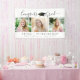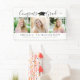 Modern Graduation 3 Photos Script White Black. Congratulate and celebrate your graduate with this modern banner sign personalized with three photos, name, school name and class year and/or your custom text and the title CONGRATS GRAD in a trendy calligraphy script accented with a black graduation cap against a white background. BANNER OPTIONS: The sample is shown in the 3x5' indoor style--other sizes and "outdoor" are available on the ordering page as well as the option of transferring the design to a foam board, poster, tapestry or other product. NEED IT FAST? Contact the designer for the link to the instant downloadable digital file to print locally. ASSISTANCE: For design assistance, contact the designer BEFORE ORDERING via the Zazzle Chat MESSAGE tab below or email makeitaboutyoustore@gmail.com.