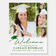 Celebrate your graduate and identify the party location and welcome guests with this welcome sign in green and white featuring four photos and modern script typography. The design features a modern handwritten script typography title WELCOME accented with a green graduation cap and personalized with your custom text, graduate's name, school and class year. Make text and graphic color changes in EDIT. OPTIONS: The sample is shown in a 18x24" size; other sizes are available (go to CHOOSE YOUR SIZE section for even borders by changing the height and width proportionally AFTER clicking the UNLOCK icon). You can also transfer the design to a poster, banner, tapestry backdrop or other products or have the designer convert it to a DIGITAL DOWNLOAD file for local printing BEFORE personalizing. ASSISTANCE: For help with design modification or personalization, color change, resizing or transferring the design to another product or converting to a Download file, contact the designer BEFORE ORDERING via the Zazzle Chat MESSAGE tab below or email makeitaboutyoustore@gmail.com.
