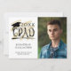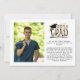 Announce the graduation achievement of your son or daughter with this 2 photo graduation announcement card featuring a modern hand lettered brush calligraphy typography title design GRAD with class year and graduation cap or mortarboard in editable colors (shown in black) against a gold swash. Change the text, graduation cap or background colors to school colors or to coordinate with your photos. The back offers a place to add your custom text about your graduate's achievements and plans. ASSISTANCE: For help with design modification/personalization, color change, transferring the design to another product or if you would like coordinating items, contact the designer BEFORE ORDERING via the Zazzle Chat MESSAGE tab or email at makeitaboutyoustore@gmail.com.