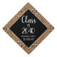 Show your style wearing this Modern Graduation Leopard Print Personalized Graduation Cap Topper. It has classy design of a black and tan brown leopard pattern on the background and a black square on the center. The text is "class of" custom year in trendy calligraphy script. Your name and name of high school is on the lower area.