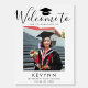 Modern graduation party sign featuring a black graduation cap at the top with handwritten script accents on a white background. Personalize the simple graduation sign with the graduate's name, photo ,school name, and graduation year below. The trendy graduation sign is perfect for both high school and college graduates!