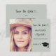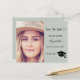 On front: Add your own vertical size photo of the graduate. A trendy muted sage green background, black text. Templates for a name and date. The name and the text: Save the Date are written with a modern hand lettered style script. With a cap, tassel topper.