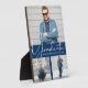 Your favorite photos, the word Graduate, your name and graduation year in elegant white text on the front, this frameless photo plaque with a built-in easel is a great keepsake to remember your graduate's special milestone. **TIP: Upload all horizontal photos for best results. Click on Customize further link to change the color, fonts or layout using our design tools. Matching invitations, save the dates and more in our store.
