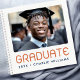 Modern graduation guest book featuring your photo and the text "graduate" in a modern font with your year, school name or name below. Dark blue and orange text on white background. Add an additional photo on the back.