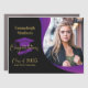 Show off your grads on your car! Customize this sign to celebrate your graduate, especially this year with no ceremonies planned. Honor their achievement by adding a photo and your text using our templates. This sign is black, purple and gold (some texts are a sparkle, glitter gold). Graduation cap and diploma in matching purple.
