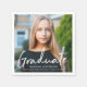 Add a stylish touch to your graduation party with custom graduation photo paper napkins. The graduation napkins features a placeholder for your custom photo and text and a trendy handwritten script font.