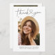 Simple and modern graduation thank you template card to send out to those who congratulated you, attended your graduation party, gave you gifts etc. It says "thank you" on the top in a modern script font with a cute heart in-between. You can add a second picture on the back and the message is editable.
