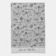 This Modern Gray and Black Chef's Kitchen Insect kitchen towel features an array of hand-drawn insects including butterflies, bees, ladybugs, grasshoppers, dragonflies, and more, Illustrated in black against a modern light gray background. Personalize with chef's name.