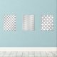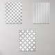A set of gorgeous geometric light gray abstract designs. This print set pack consists of polka dots, chevron strips and a Moroccan trellis design