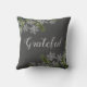 This beautiful gray pillow, featuring clusters of one of my original snowflake photos intertwined with pine and juniper berries, puts a modern yet elegant twist on holiday decor. The text— blessed on one side, grateful on the other— can be customized to any affirmation or name that you prefer. An inspirational pillow to brighten your home at Christmas or all winter long. Would also make a wonderful seasonal gift for newlyweds or new home owners!