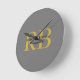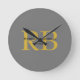 Modern Gray Gold Color Monogram Add Name Initials Round Clock
