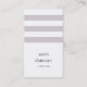 Modern and chic business card design in a unique vertical format features three wide grayed lavender stripes on a white background, with your name and business name or title in an attractive mix of lowercase serif and modern caps typefaces. Add your full contact information to the back in rich midnight blue. Suitable for any occupation; example shown for interior design professions.