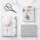 A cute assortment of neutral wrapping paper sheets, featuring minimal gifts on a bray background, gingerbread men and snowflakes on a beige gray background, and a white and gray abstract pattern. Contact designer for matching products. Copyright Anastasia Surridge for The Christmas Shop, all rights reserved.