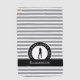 This modern gray and white striped golf towel features a female golfer silhouette framed in a black and white emblem with the repeating text “GOLF GOLF GOLF GOLF.” A sleek black band holds a customizable template for a name, initials, or short text. The neutral palette keeps the design stylish and feminine without being overly girly, making it a perfect personalized gift for women golfers. All colors and text can be edited in Zazzle’s design tool.