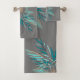 Modern Gray Teal Palm Leaves Beach Bathroom Bath Towel Set