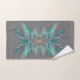 Modern Teal Palm Leaves on a gray background, Beach Bathroom Bath Towel Set design by Sandy Closs