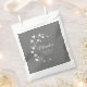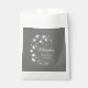 Pretty and modern bridal shower favor bags design features a spray of white flowers and white customizable text on medium gray background