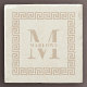 Modern and elegant blush monogram coaster with your custom initial and name within a greek key border frame surrounding in coastal mediterranean color way.