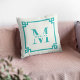 Modern Greek Key Frame Monogram Elegant Teal Throw Pillow