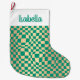 Modern Green and Gold Checker Pattern Large Christmas Stocking