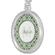 Modern Green and White Geometric Monogrammed Name Silver Plated Necklace