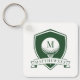 Modern Green and White Name Initial Monogram Golf Keychain