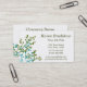 This custom business card features contemporary blue and green floral stems on a white background with green text. You can add, remove or customize the text with your own information on the product order page. This business card design would be perfect for many different professions.