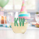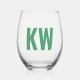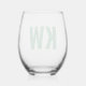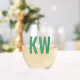 This stemless wine glass features bold sage green block letter initials centered on the glass for a clean, modern monogram look. A natural bridesmaid gift, birthday present, or housewarming gift for the wine lover who appreciates a considered personal touch.