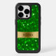 Modern green tones bokeh style glitter pattern. Gold accent and customizable name/monogram