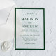 Set a refined and modern tone for your celebration with this green border acrylic wedding invitation. A bold dark green frame surrounds the design on a clear acrylic background, creating a contrast that feels elegant and timeless. Classic green serif lettering paired with a subtle calligraphy script accent adds a sophisticated touch while keeping the layout clean and balanced. Perfect for formal ceremonies, modern celebrations, and classic venues, this minimalist acrylic invitation offers a polished presentation that coordinates beautifully with an elevated wedding stationery suite.