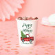 Modern Green Brush Script Happy Holidays Watercolor Vintage Red Truck with Christmas Tree Paper Cups
