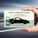 Business card featuring an image of a car on a green background with charging station for an electric vehicle. This business card can be used for a garage, car reseller, car repair center or any business related to the sales and repairs of cars.