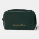 A modern green charcoal chic gold script monogram cosmetic bag is perfect for organizing and carrying everyday essentials.