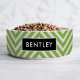 Modern Green Chevron Personalized Pet Bowl