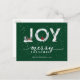 Modern Green Elegant Script JOY White Snow Overlay Holiday Postcard