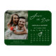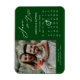 Modern Sage Green background Elegant Script ‘Save the Date’ Magnet featuring Custom Calendar with a beautiful Photo. Let your family, friends and colleagues know that you have set a date for your wedding celebration with this elegant magnet.