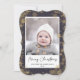 Modern Blue Elegant Script Snowflakes Bokeh Minimalist Holiday Card. Send customizable and personalized holiday greetings to friends, colleagues and family in simple, minimalist, elegant, fun, festive and modern photo cards! A beautiful frame of variety of gold winter snowflakes on sage green background surrounds your photo. The greeting " Merry Christmas " is written in elegant calligraphy, and below features your custom greeting message from your family name in modern typography. Reverse to reveal a beautiful the full gold winter snowflakes on sage green pattern background.