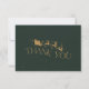 Thank your guests in festive style! This modern and elegant thank you card features a beautiful sleigh soaring through a snowy night sky, all set against a dark green background with faux gold details. It’s a chic way to show your gratitude and perfectly complements our Modern Snowflake Christmas Stationery Suite.