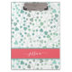 Modern mint and coral floral pattern clipboard with an elegant hand lettered script name on a chic coral ribbon. Personalize with your name.