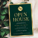Create professional business open house event invites with this Emerald Green & Gold Open House Invitation. This corporate green and faux gold open house event invitation features a minimal layout with space for your logo and event details, perfect to invite guests to your New Office, Business Opening or Housewarming Party.