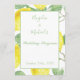 Lovely modern Save the Date with yellow lemon and green foliage; with green scripts. Customize it with your own info.