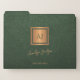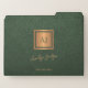 Modern green gold monogram name script luxury file folder