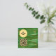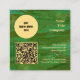This modern green and gold marble square business card is for professionals and entrepreneurs. The front side has a customizable QR code that you can replace with your own. There is also a logo placeholder where you can add a logo or photo of yourself or your business. There is text in for your name, title and company, plus email, phone, handle and address. On the back is customizable elegant script for adding a tagline or personalized message and below that is where you can enter your web address.