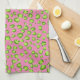 Modern Green Pink Leopard Pattern Animal Print Kitchen Towel