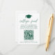 Celebrate your high school graduate’s achievement with this stylish college fund enclosure card featuring a green graduation cap at the top and "College Fund" in modern green script on a white background. Easily customize it with the graduate’s name, school name, graduation year, and personalized instructions. A convenient QR code allows friends and family to contribute effortlessly to their college fund. This elegant and practical design is the perfect addition to graduation announcements, party invitations, or thank-you cards.